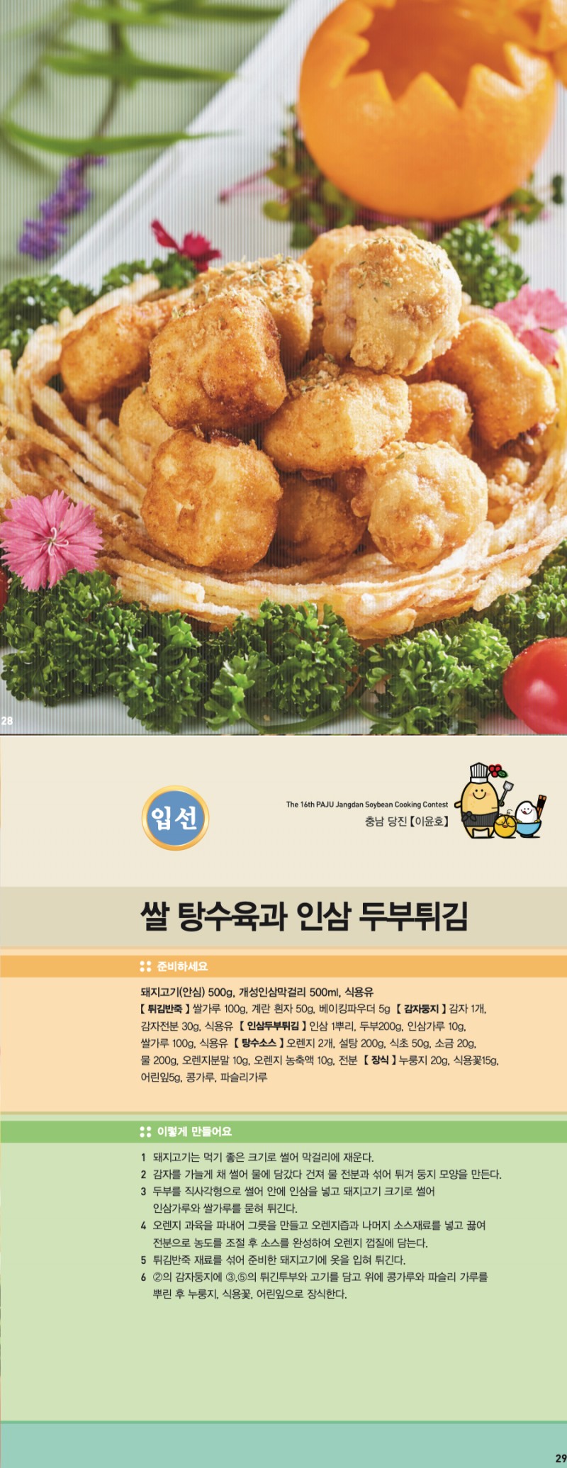 [2025 파주장단삼백요리대회]쌀 탕수육과 인삼 두부튀김 관리자 아이디로 검색 0 50 2025.11.03 17:58 첨부파일 - 첨부파일: 11.jpg (1.7M) 15 2025-11-03 17:58:07 짧은주소 - 짧은주소: http://yori.or.kr/bbs/?t=18J 주소복사 × 짧은 글주소 복사 Note! 위 주소를 드래그, 복사(Ctrl+C)하여 사용하세요. 이전글다음글 목록 본문 쌀 탕수육과 인삼 두부튀김 댓글목록 등록된 댓글이 없습니다.